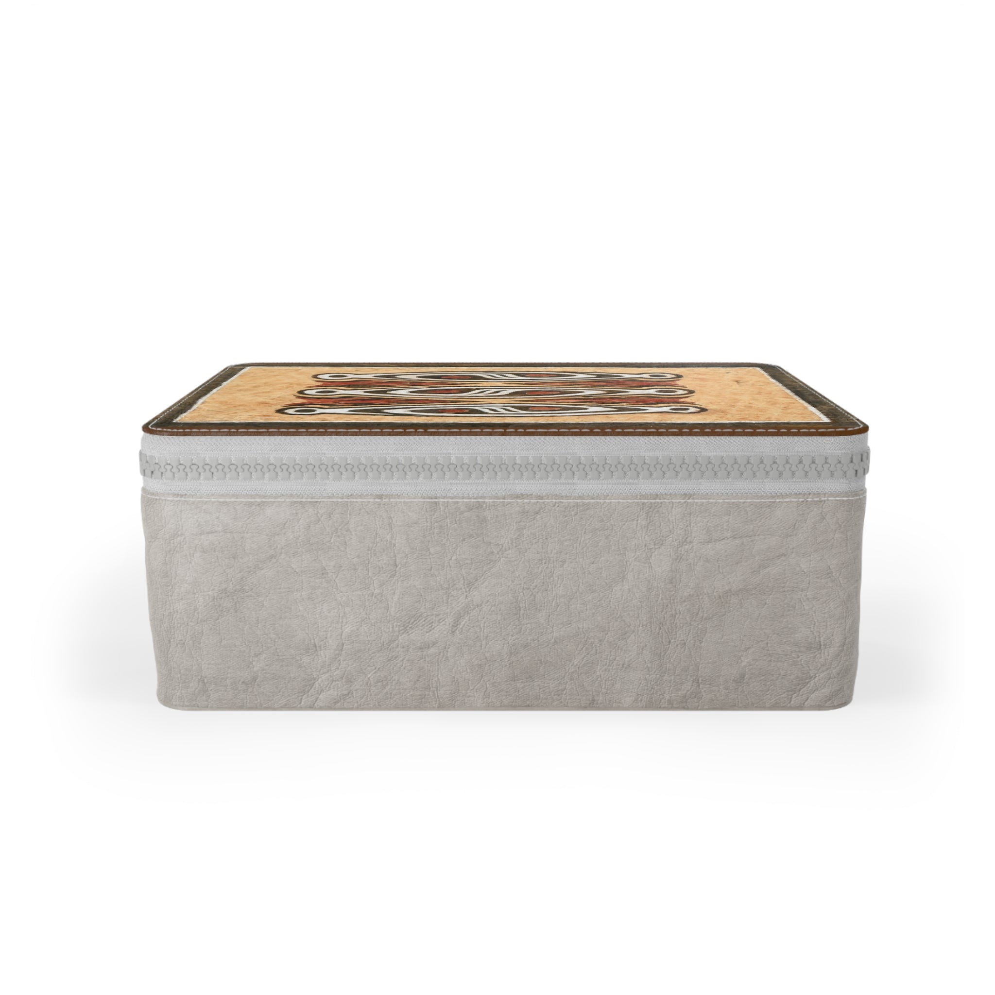 Maak van je lunchmoment iets bijzonders met deze herbruikbare papieren lunchtas met traditioneel Papoea-motief. Een duurzame en stijlvolle manier om je te eten mee te nemen.