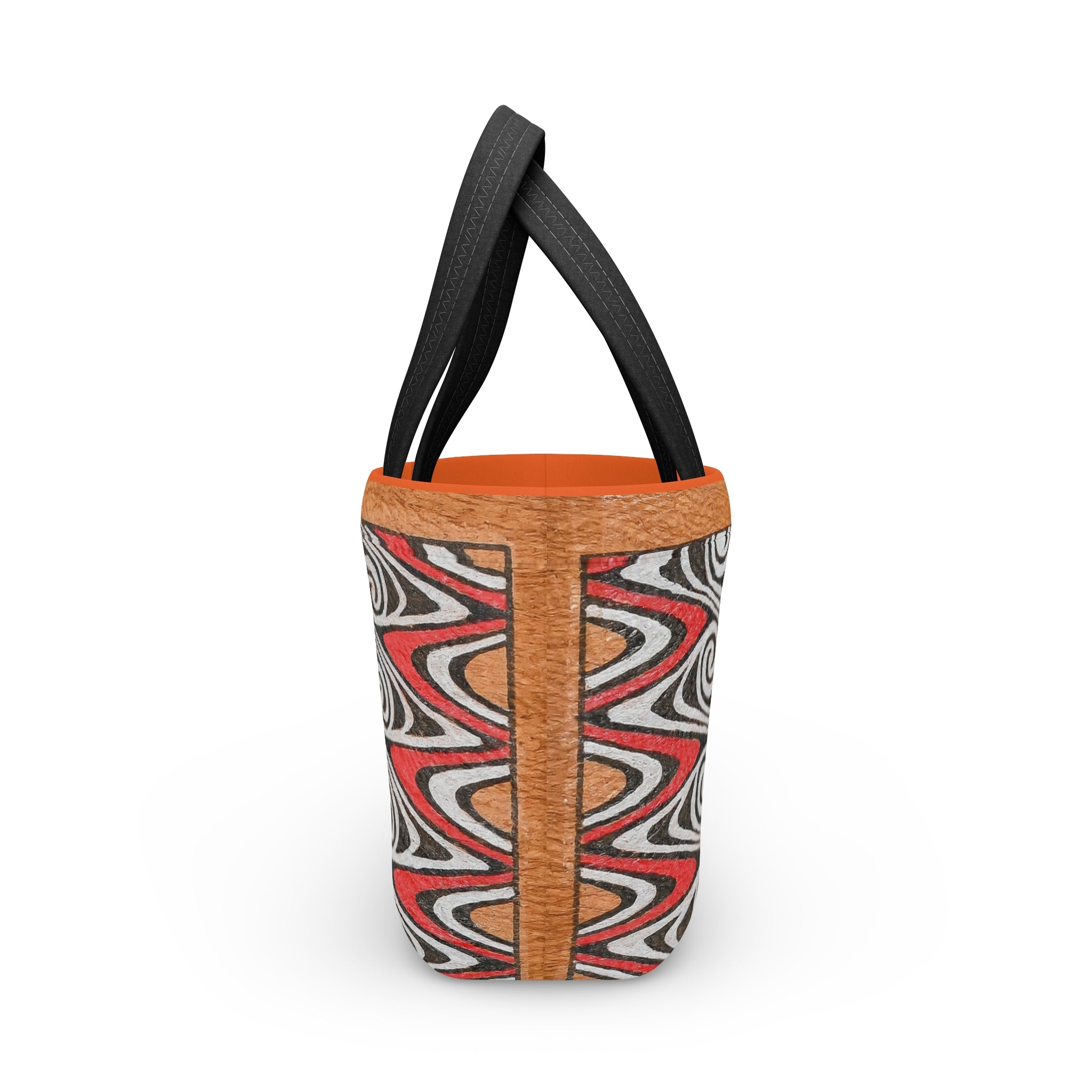 Breng karakter en verhaal in je dagelijkse routine met deze unieke lunchtas. De krachtige, handgetekende print is geïnspireerd op traditionele Papua motieven en symboliseert beweging, verbinding en oorsprong. De lunchtas is gemaakt van stevig neopreen, wat zorgt voor een lichtgewicht en licht elastisch design. Dankzij de platte bodem blijft je lunch stabiel staan en biedt het binnenvak voldoende ruimte voor een maaltijd en snack. De magnetische drukknoopsluiting maakt openen en sluiten eenvoudig en snel.